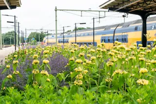 We willen elk jaar 2.500 tot 5.000 m² rondom onze stations natuurvriendelijker inrichten. Samen met ProRail en gemeenten zorgen we voor bloemenweides, natuurdaken en bloeiende planten op perrons en in de stationsomgeving. Ook planten we karakteristieke bomen die oud kunnen worden. Die trekken insecten en vogels aan en versterken de biodiversiteit.
